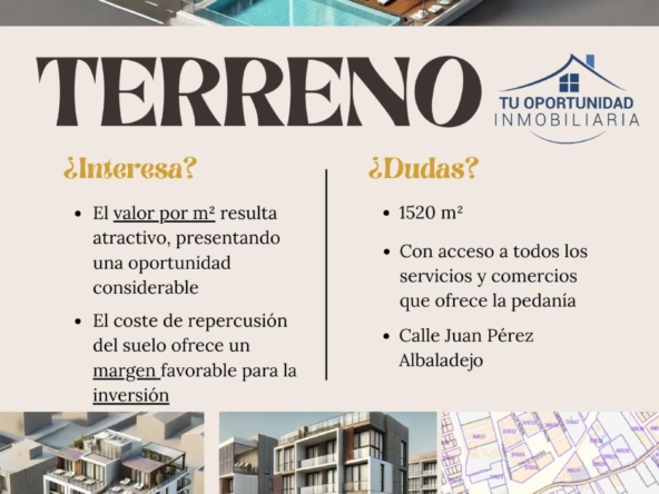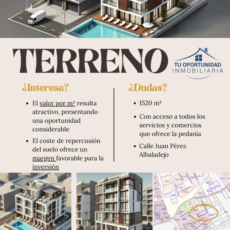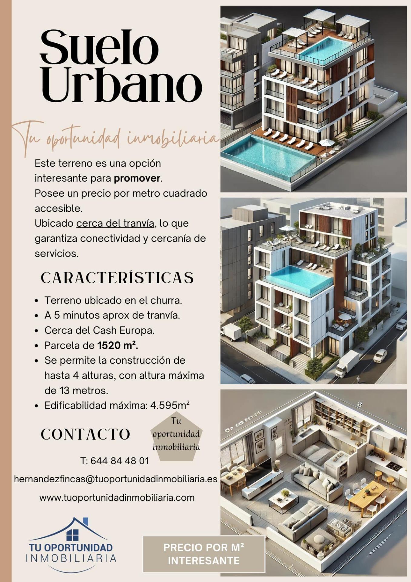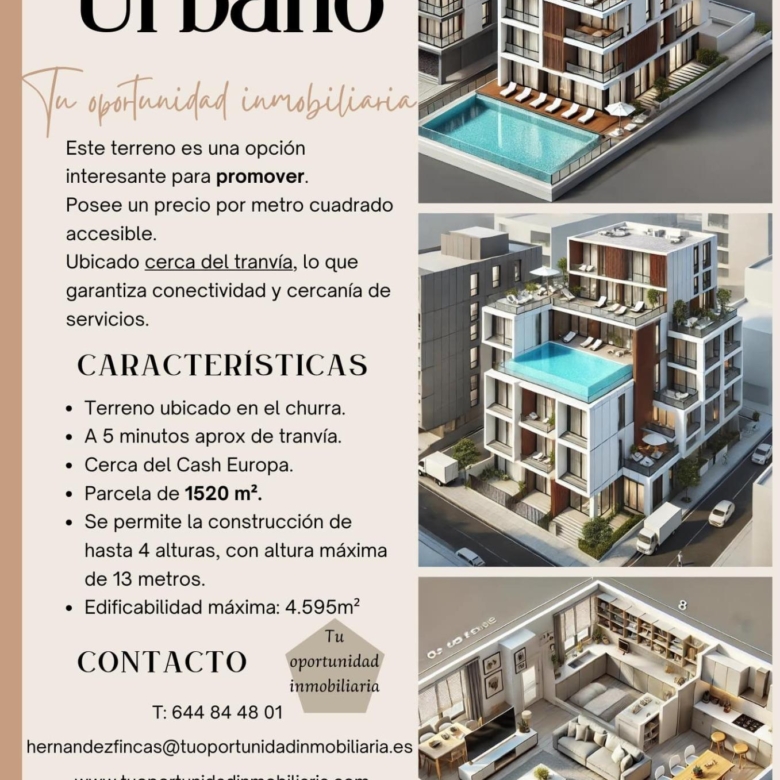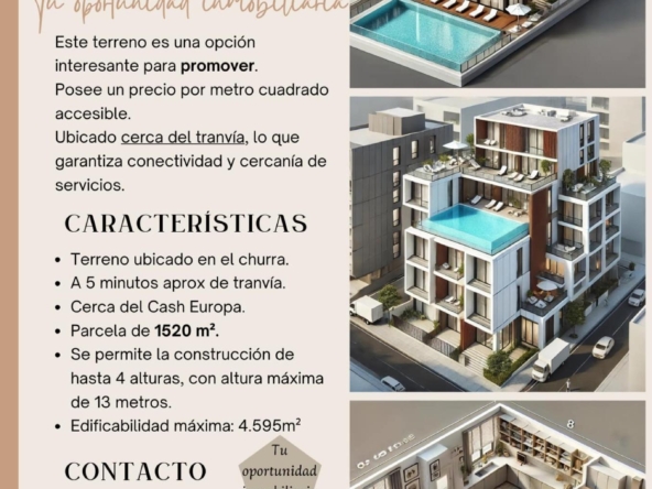 Le presentamos este magnífico terreno, estratégicamente ubicado a tan solo 5 minutos de la parada del tranvía, y cerca de puntos clave como Cash Europa y Mercadona. Con una amplia superficie de 1.520 m², este terreno ofrece un enorme potencial.